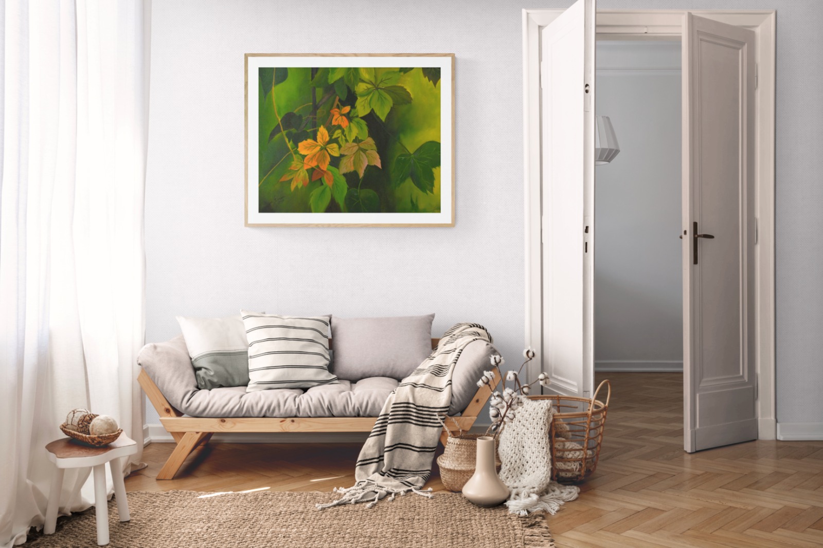 Autumn is a time when nature undergoes a remarkable metamorphosis. The once lush green foliage now transforms into an array of captivating colors. This painting that transition perfectly, as it allows us to witness the gradual change from summer to winter.