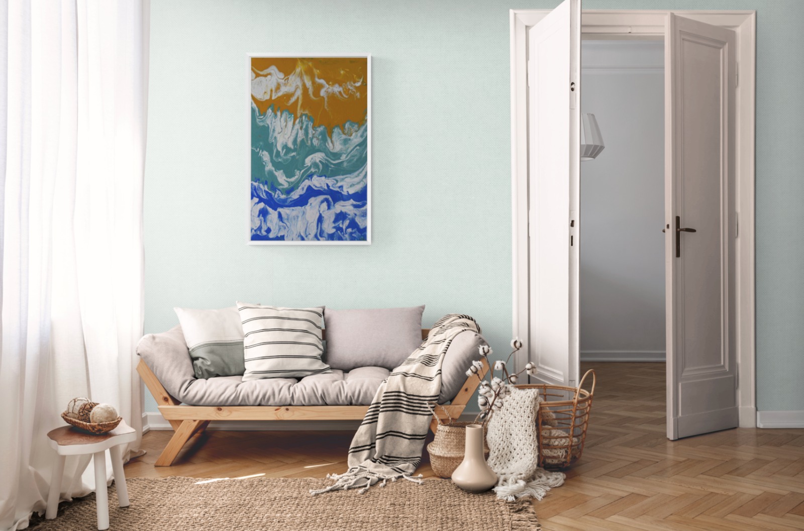 The fluidity in this painting mimics the ebb and flow of tides; it is ever-changing yet harmonious. Each layer blends seamlessly into another, capturing both movement and stillness simultaneously.