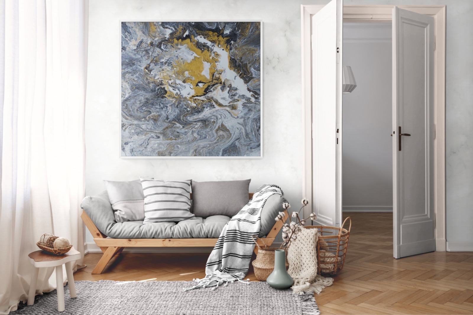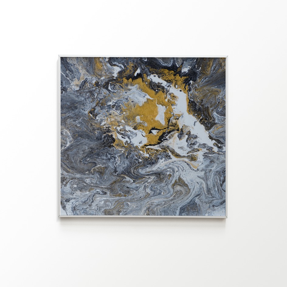 As an artist, I cannot emphasize enough the importance of fluid art. Also known as acrylic pouring, is a form of artistic expression that holds immense importance in the art world. The beauty of fluid art lies in its ability to create indirect patterns and designs by pouring or dripping a mixture of acrylic paint, medium, and various additives onto a canvas. The colors blend seamlessly, resulting in unique and visually captivating creations that we see between the rich gray with the blinding shade of gold.