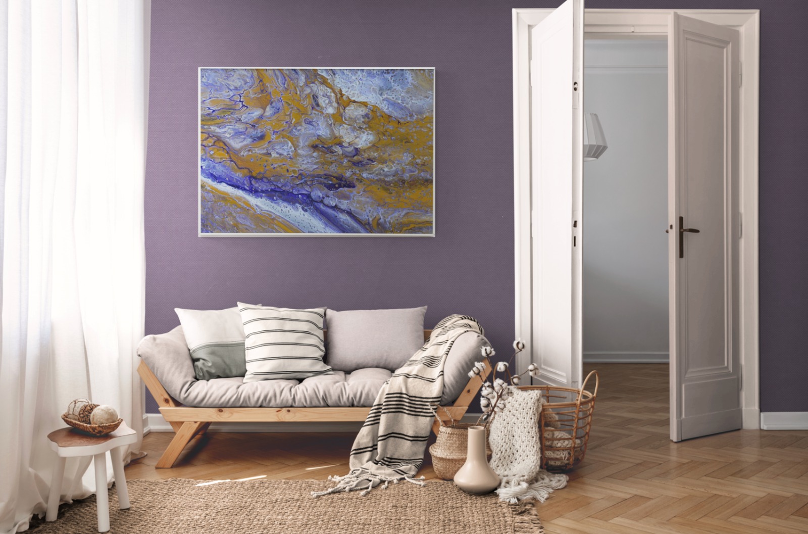 The strong hints of gold add a touch of royalty to the artwork. Gold has long been associated with wealth, prosperity, and success. It brings warmth to the composition while also representing enlightenment and spiritual awakening. The interplay between purple and gold creates a harmonious balance between power and beauty.
