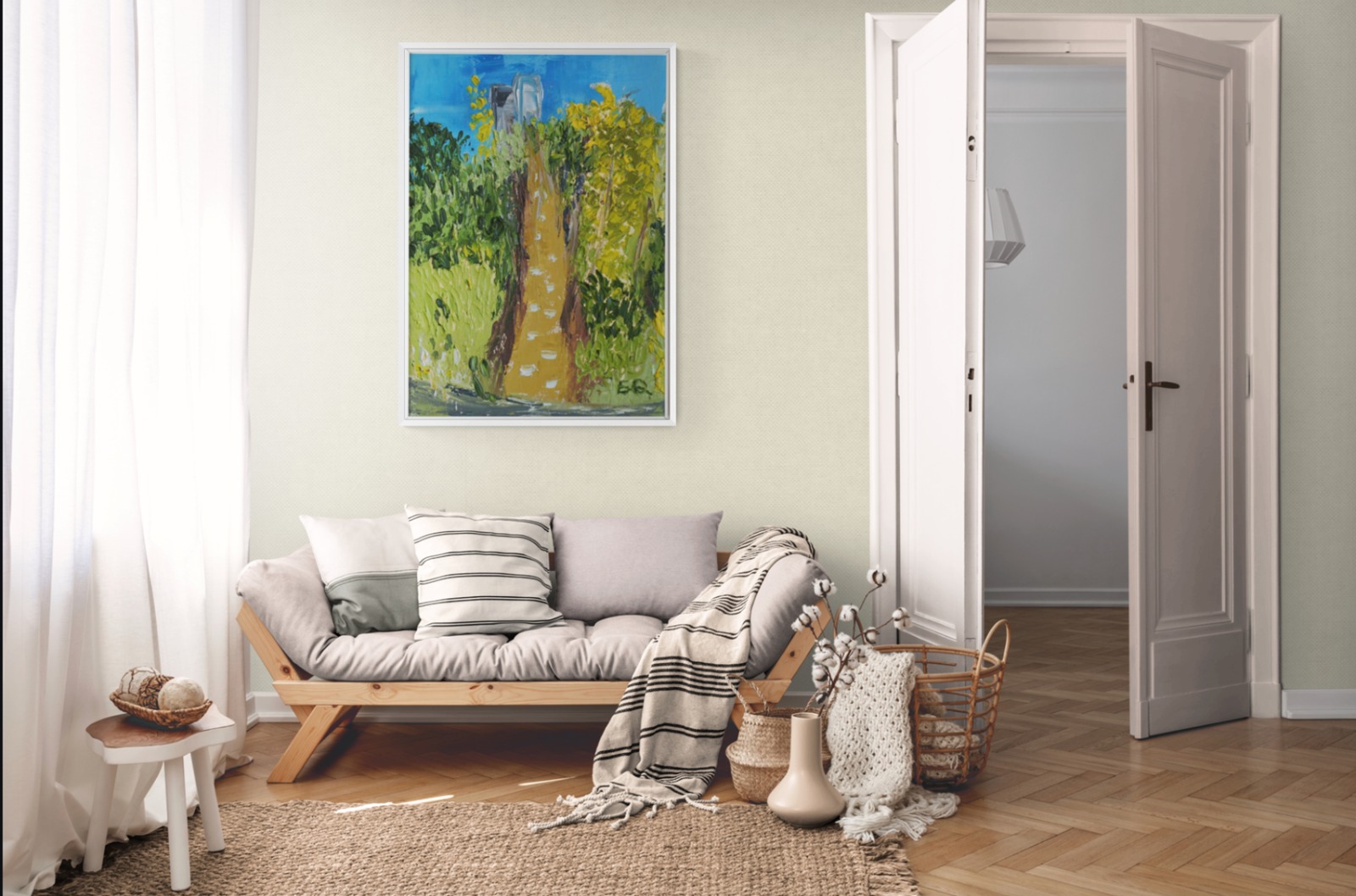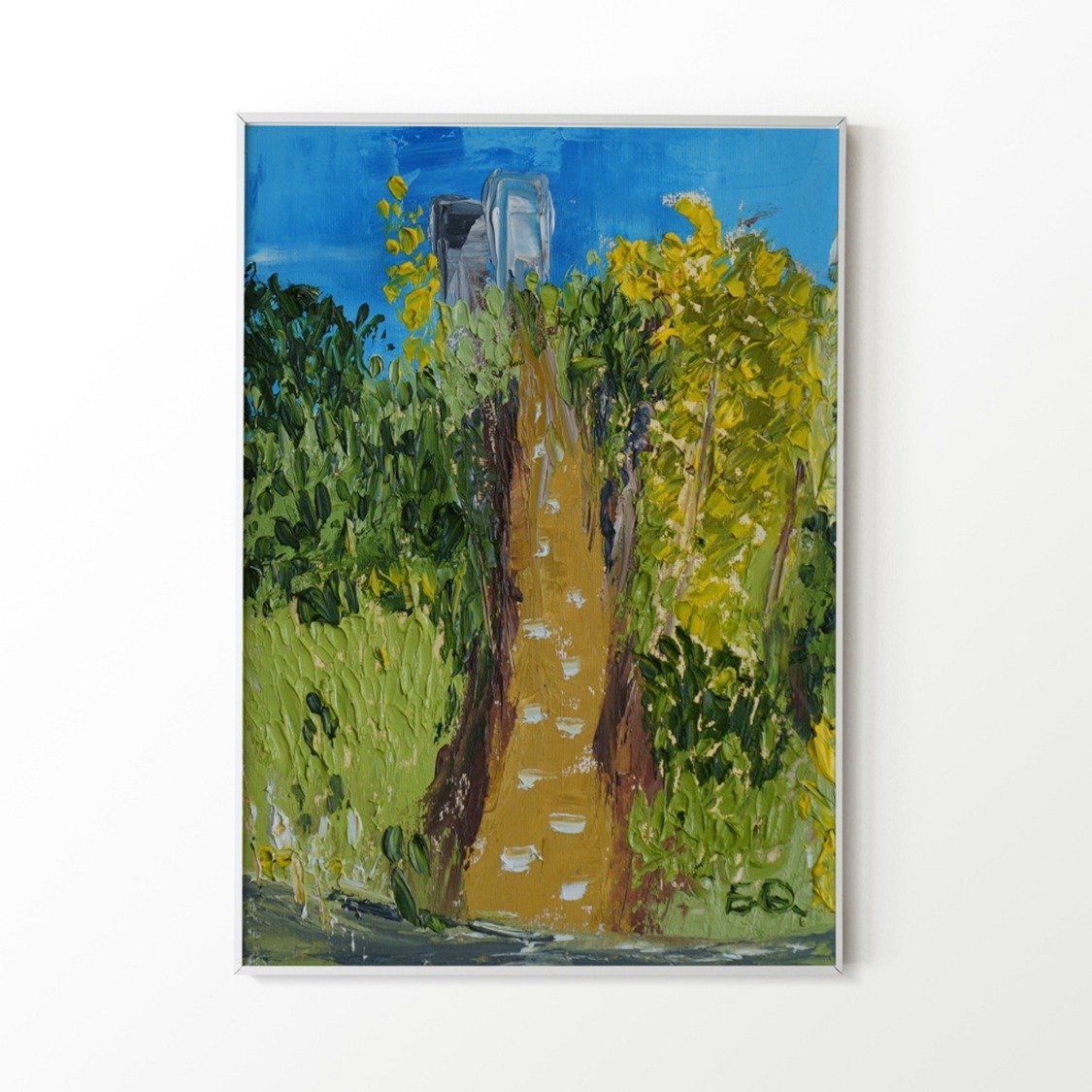 The lack of detail in both the path and trees invites viewers to interpret their own personal meaning into the artwork. It encourages introspection and contemplation about one’s own journey through life.