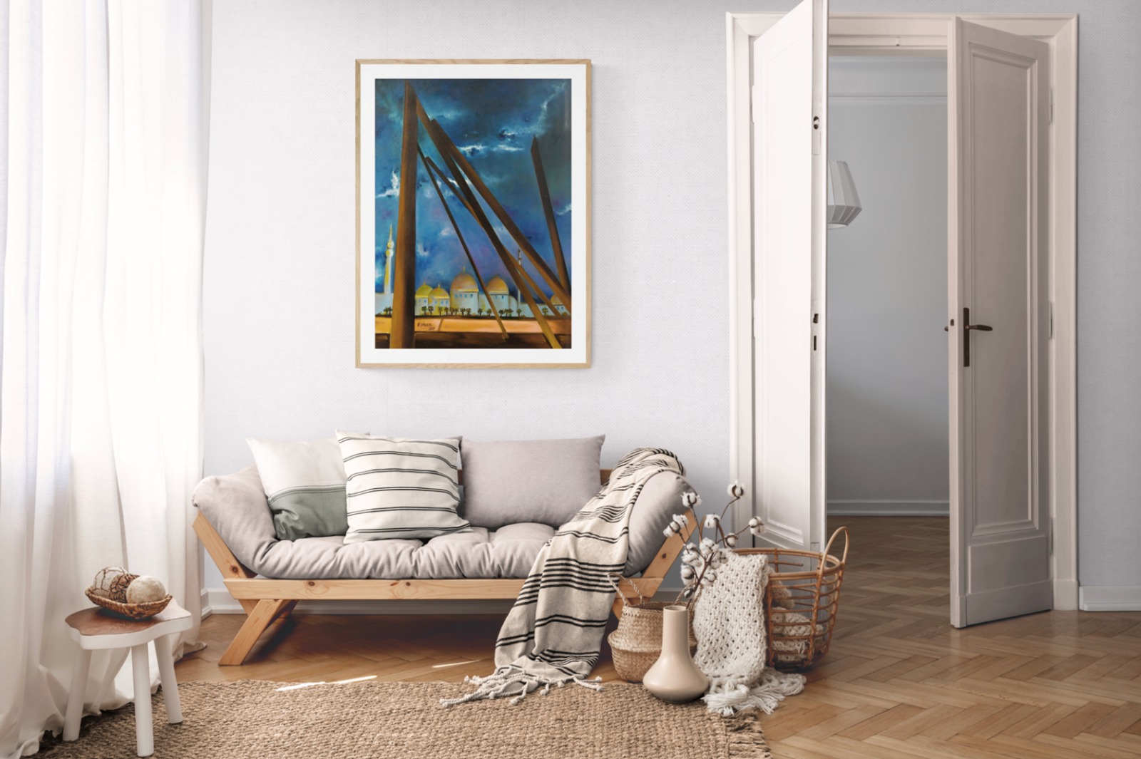 An oil painting of the ”Wahat Al Karama” stands in Abu Dhabi, capturing the essence of a nation’s gratitude and reverence towards its solders and their selfless sacrifices to keep our peace. The Founder’s Memorial is an architectural marvel that pays homage to Sheikh Zayed’s legacy. The painting showcases its proudness. This memorial serves as of inspiration for future generations, reminding them of their roots and encouraging them to carry forward Sheikh Zayed’s vision.Through this oil painting, It serves as a reminder that great sacrifices leave behind not just physical legacies but also intangible ones – values such as unity, compassion, and peace.
